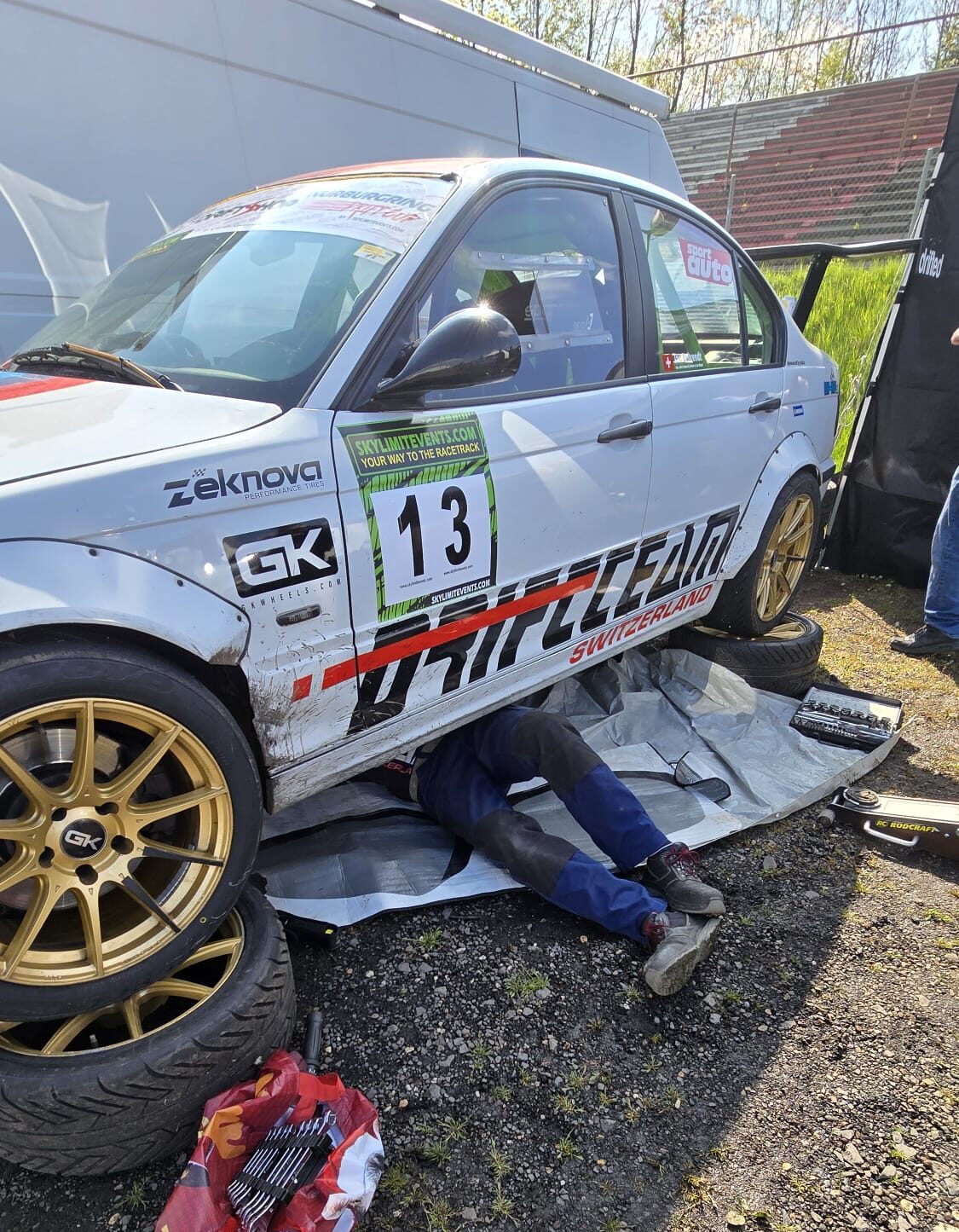 Trotz enger Platzverhältnisse konnten sich Horst und Jan mit Begleitung einen gemütlichen Platz im Fahrerlager einrichten, so dass auch die Driftteam Switzerland und andere Gäste mit genügend Platz empfangen werden konnten.